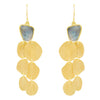 18k gold plated earrings with organic shaped stone and organic shaped gold pieces cascading down